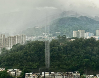 本港近日天气持续不稳定,有葵涌巿民就拍摄到一张疑似天文奇景的相片,相片由高处拍摄,可见葵涌上空如同穿了一个窿,一道雨水柱直流而下,但周边却无雨水。不少网民有直呼“神奇”,亦有人称是“海市蜃楼”,又有人形容如一条“时光隧道”,更有人称“穿越了”。