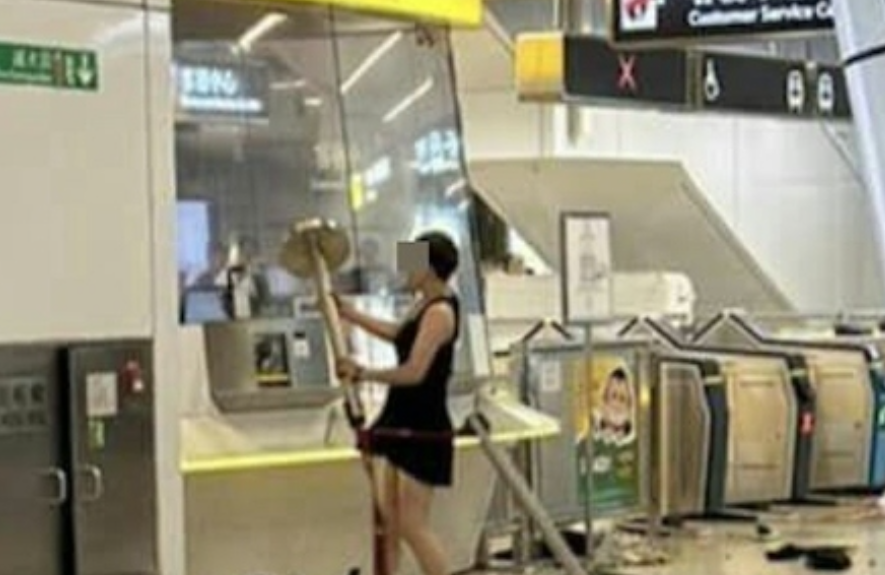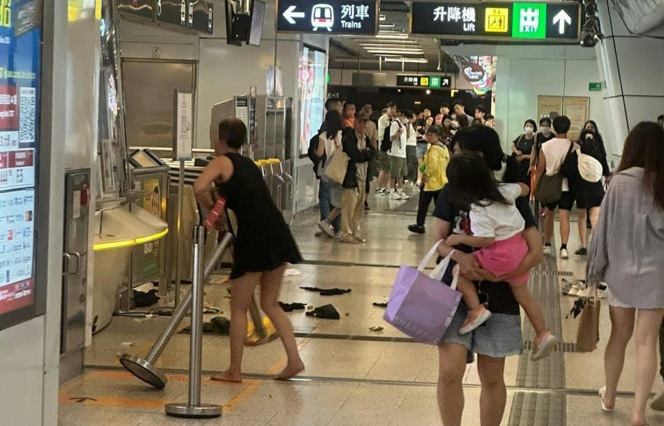 赤足女疑醉酒大闹港铁,持拉带柱暴打观塘票务站