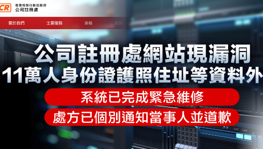 公司注册处网站现漏洞,11万人身份证护照住址等资料外洩