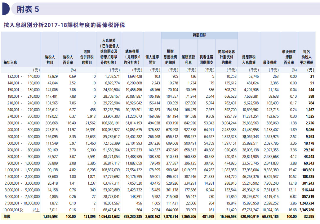 如下图所示,如果你在香港一年收入在40万到50万之间,那么平均需要交5000多的税款,如果超过了1000万,那么需要交的税款为33.4万港币左右。