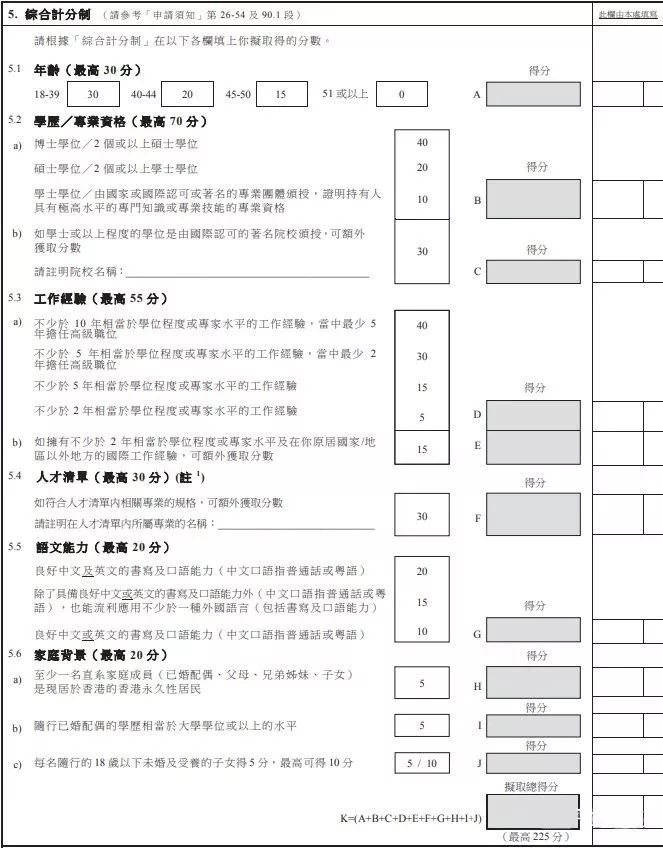香港优才计划采取的是打分制,他们有一个综合评分表,最高分225,最低及格分数80分,理论上来说,只有分数达到80分就可以申请。