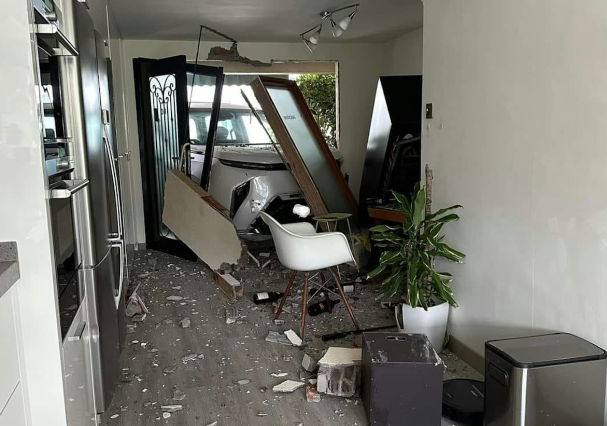 涉事独立屋屋主于社交平台上载现场图片,显示一辆白色Maxus MIFA 9七人车直衝进屋内,大门遭撞毁,大量石屎剥落,满地瓦砾。更有一个黑色红酒柜被撞至倾斜,数个酒樽从柜中跌下。