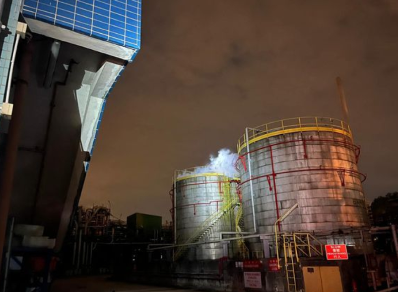 元朗宏乐街有油库于今日(19日)凌晨0时52分发生化学品泄漏事故,消防处正在现场处理。如市民受到随风飘散的烟雾和异味影响,请关闭门窗及保持镇定。