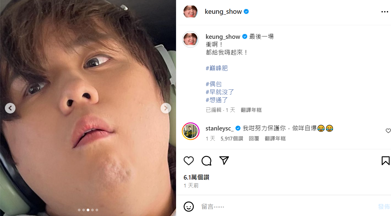MIRROR成员姜涛一向出名爱食,其身型更是网友关注焦点。早前他因脚伤难以运动,身型愈来愈宽。近日姜涛IG头像突然换为肥仔恶搞图,当中的姜涛被P成超级大肥仔的脸,比真实至少圆润三、四倍,虽然肥但又非常可爱。