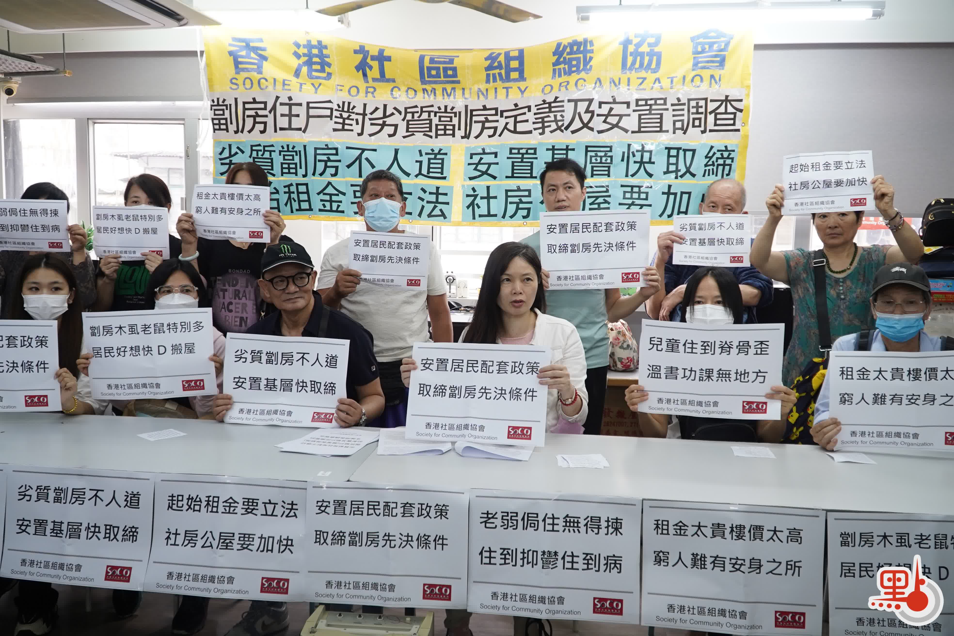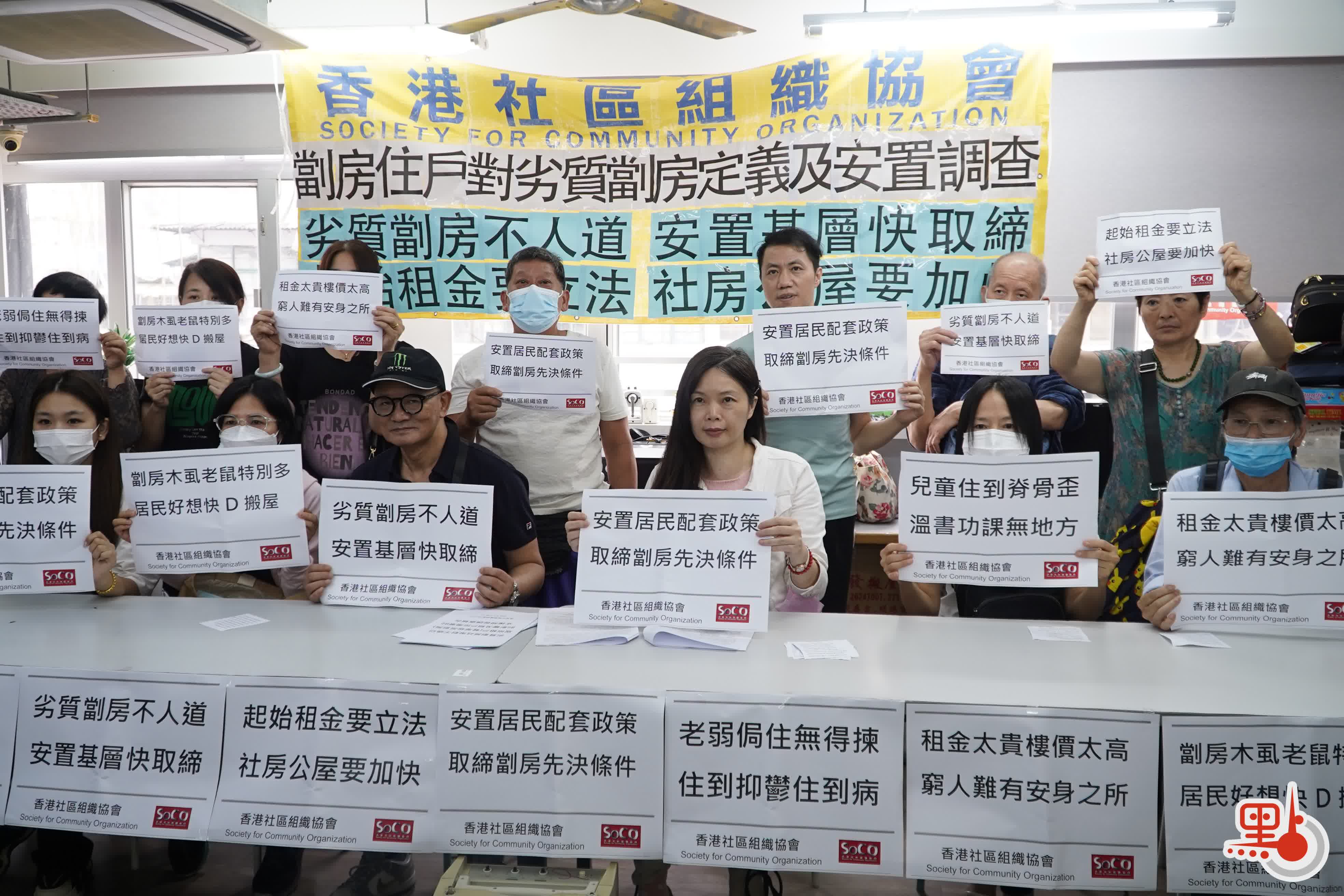 香港社区组织协会今日举行记者会,指政策对24万名劏房居民有直接影响。