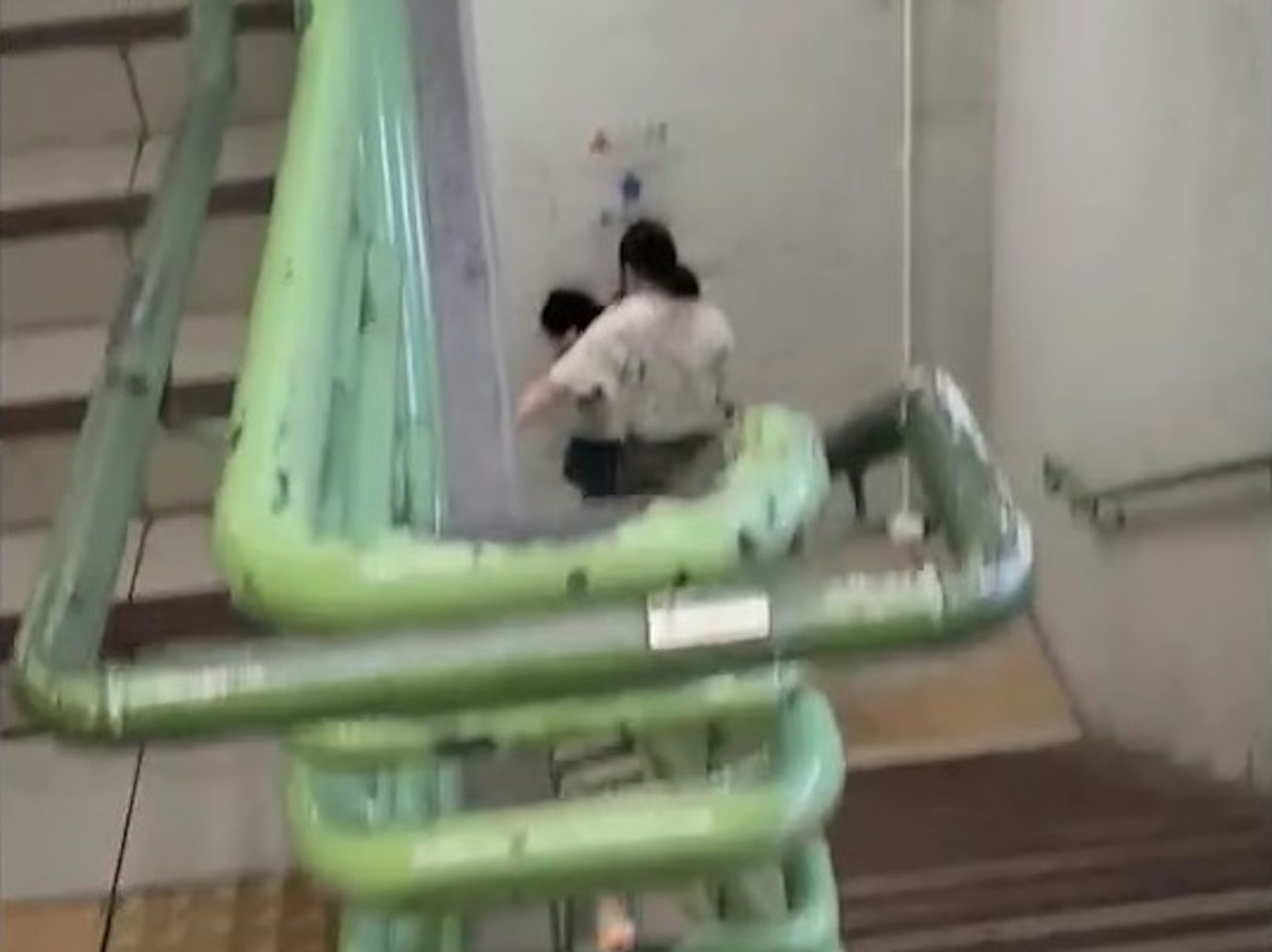 女童被带至后楼梯继续挨打。 (视频截图)