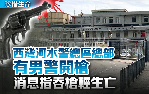西湾河水警总区总部今日(16日)有警员开枪。 消息指,事主为隶属水警港口分区的一名高级警员,吞枪轻生,送院后证实不治。