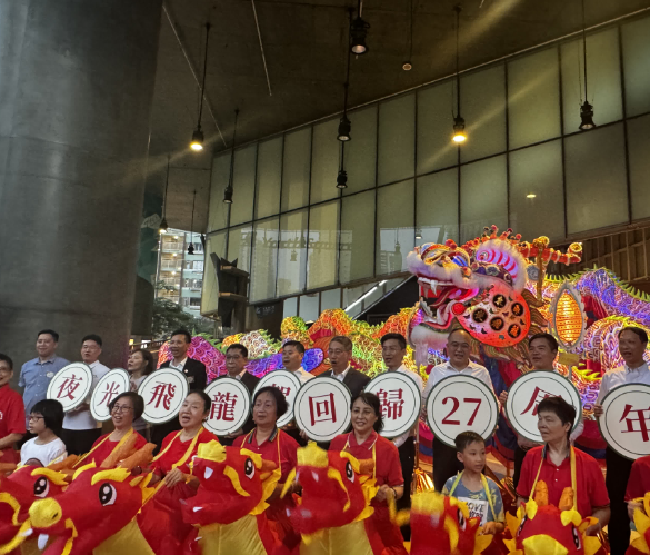 香港柴湾各界今日举行“夜光飞龙贺回归-东区·柴湾各界庆祝香港回归祖国27周年主题展览亮灯仪式”。