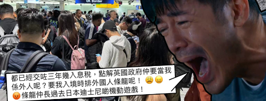 该名移英港人在fb群组“英国香港人生活交流区”发文,指“都已经交咗三年几入息税,点解英国政府仲要当我係外人呢?”,话自己早前入境英国时,要排外国人的队伍,形容“条龙仲长过去日本迪士尼啲机动游戏!”,不过,楼主亦戴定头盔话係“纯粹个人发洩”喎。