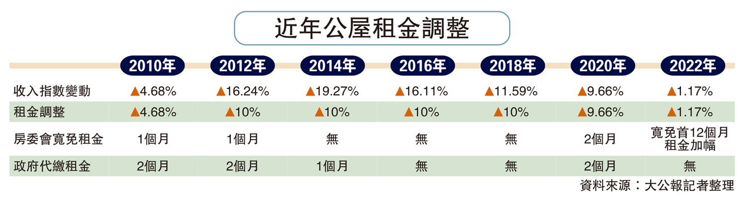 近年公屋租金调整