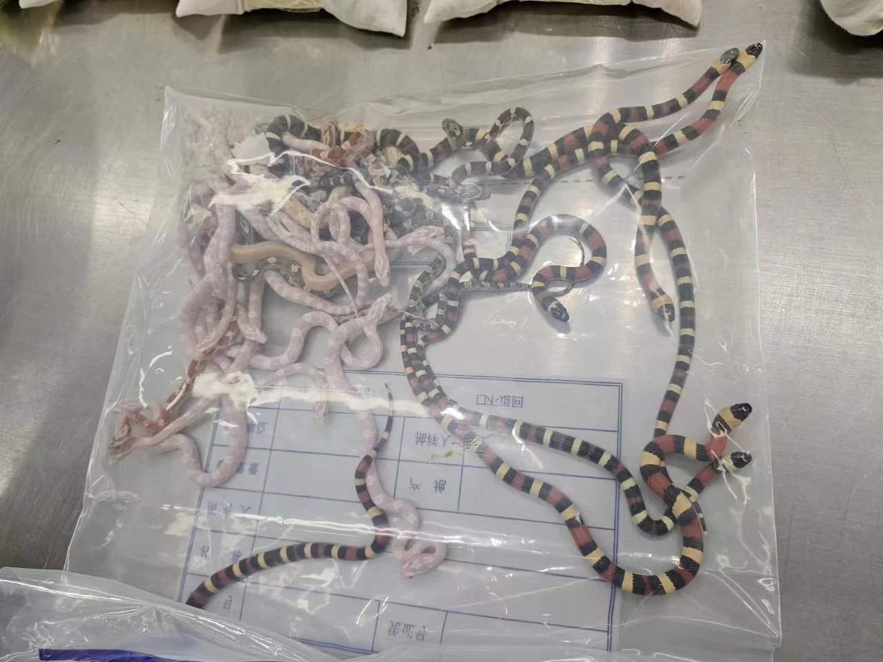 男子福田口岸被截查 裤袋藏104条活体蛇