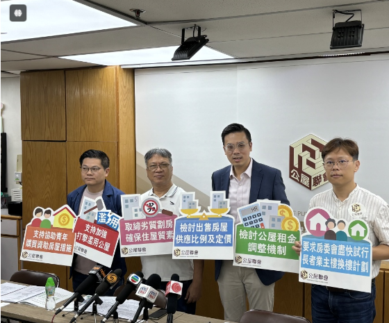 公屋联会亦提出,在资助房屋的配额上,也应该同时作调整,如在“白表居屋第二市场计划”(白居二计划)中,整体配额数量应进一步增加,同时家庭与一人申请者的比例现时“九一比”,应适量增加一人至不少于20%,为单身人士如青年人提供更多购买资助出售房屋的机会。