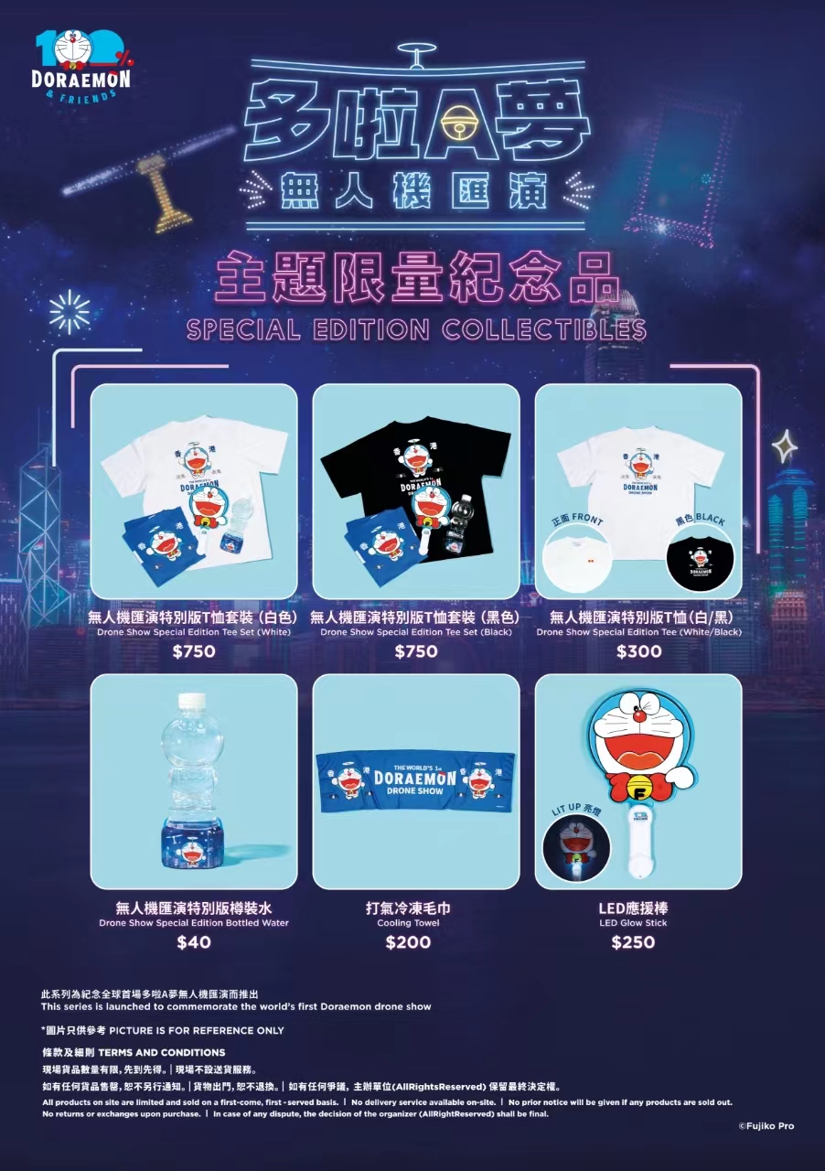 继5月举办的全球首场多啦A梦无人机汇演,及上周六(13日)“100%多啦A梦&FRIENDS”巡迴特展首站正式展开反应热烈后,主办单位AllRightsReserved (ARR) 暂定7月20日(星期六)晚上7时30分,再度在维港上空举办第二场无人机汇演。