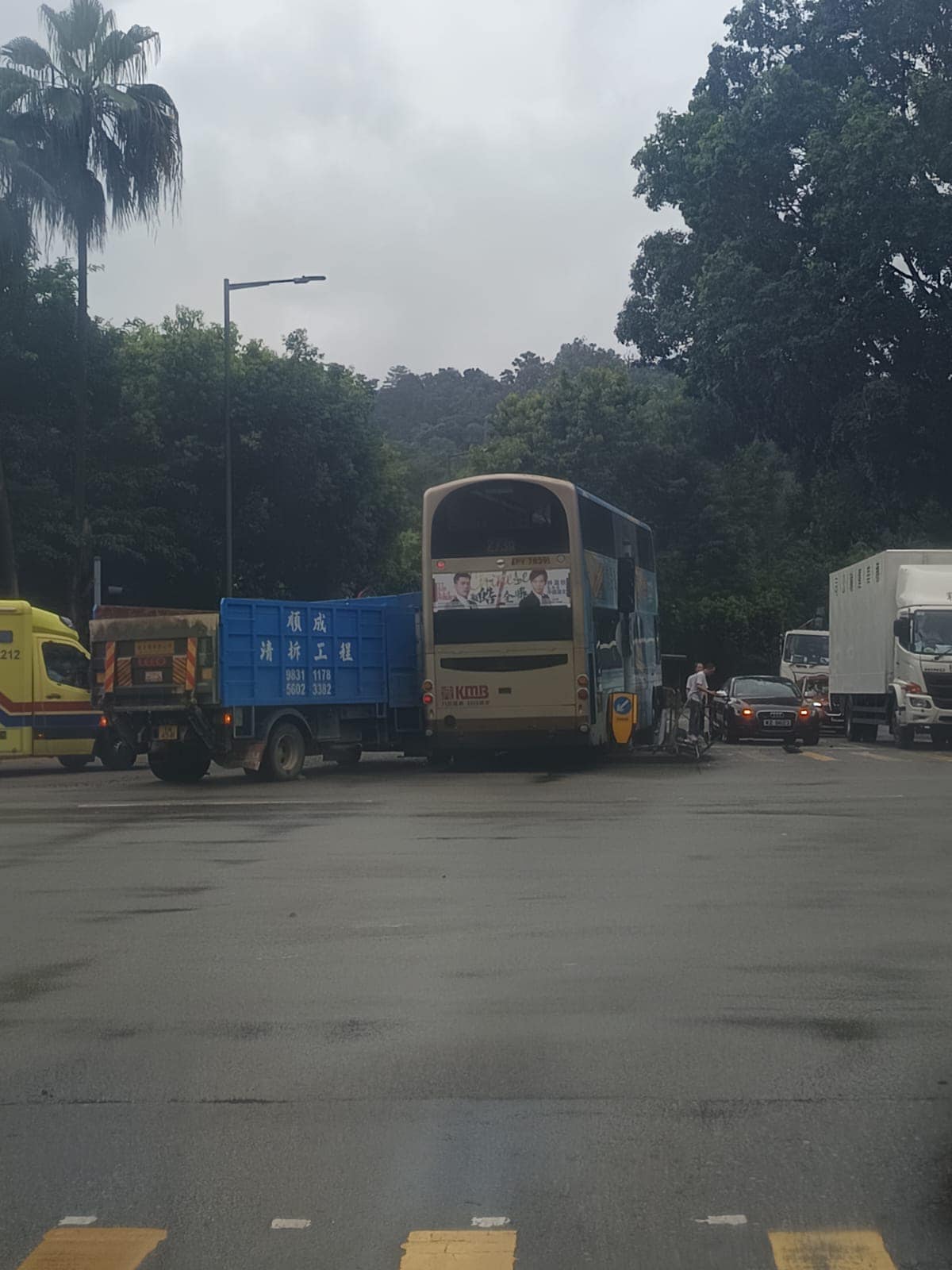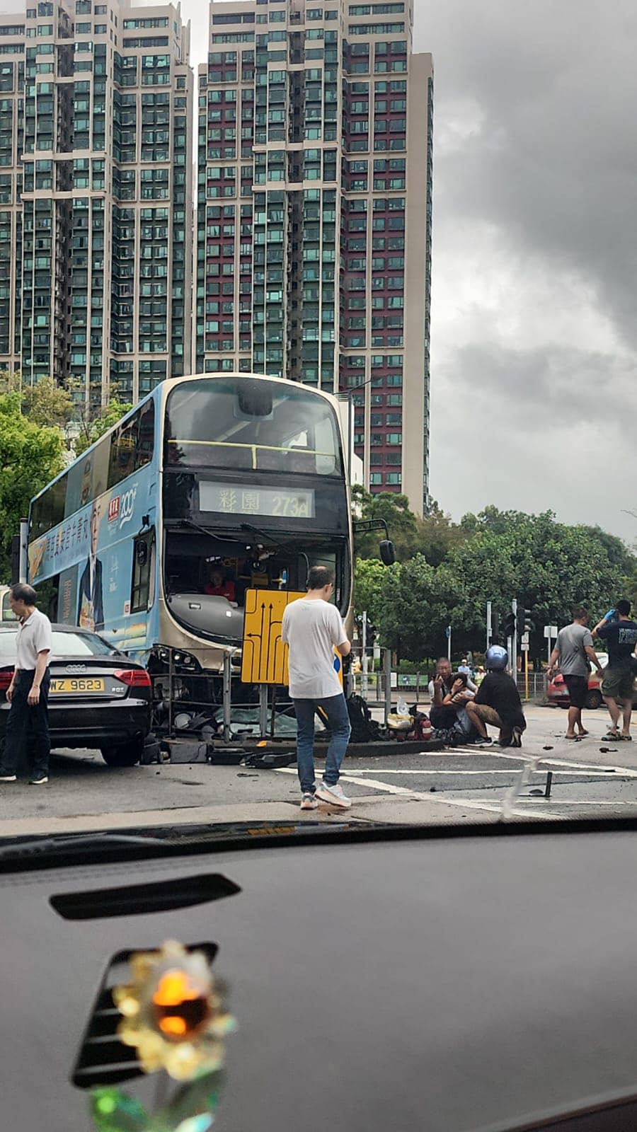 网上有车CAM片段显示,巴士沿一鸣路行驶至百和路交界,一辆货车驶出拦腰撞上巴士,巴士继而衝前,撞向安全岛。现场可见,巴士挡风玻璃及车头底部配件甩脱,安全岛上的栏杆、灯箱和路牌全部损毁或倒下。多部救护车赶到现场,救护员即场为伤者包扎及检查。