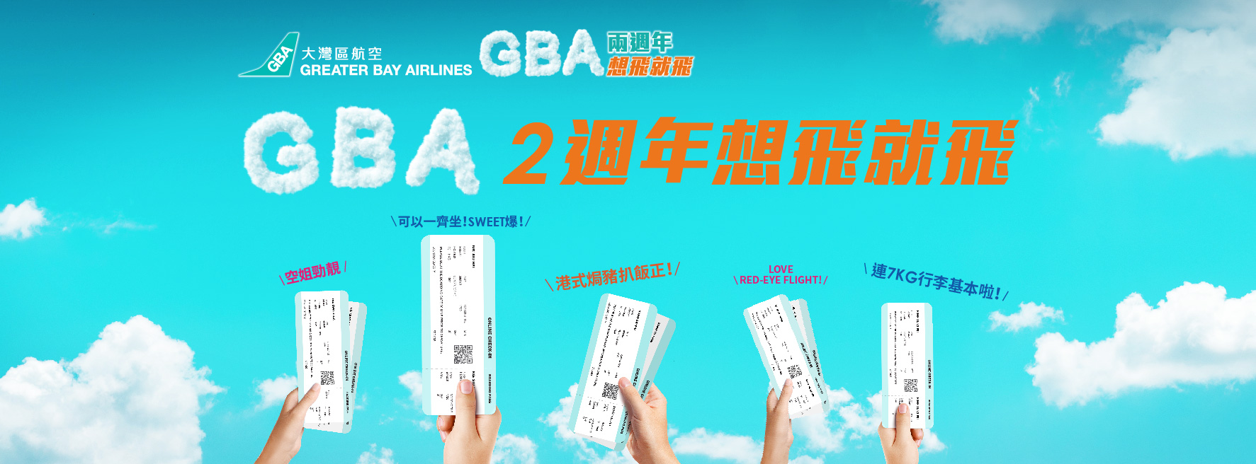 大湾区航空公布,为庆祝启航两周年,今天(23日)起至25日,以及7月29至31日的6天内,只需追踪其社交媒体账户(Facebook及Instagram),并留意当天早上10点公布的优惠航点及优惠码(中午约12点公布),即可于官网输入优惠码,以港币20元购买来回机票。(抢飞连结)