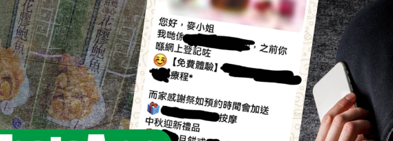 麦美娟在帖文中指,大家都可能收过“顺丰包裹错过送递”、“您的微信/WhatsApp账号被冻结”或“您的账号违规”等等诈骗讯息,而她最近收到一个新类型的WhatsApp诈骗短讯,对方在短讯写上“您好,麦小姐”作称呼,然后指麦之前在其网上登记了一个免费疗程,现有“感谢祭”,如预约可有额外礼物,包括“按摩”、“月饼”、“鲍鱼”等。