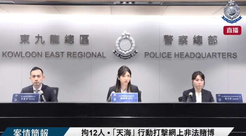 警方留意到一个由跨国犯罪集团操控、本地黑社会营运的网上非法赌博平台。经过情报分析及深入调查后,东九龙总区科技及财富罪案组于8月24日至27日展开代号为“天海”的执法行动,突击搜查一个用作营运中心的私人住宅,并以“串谋收受赌注”及“串谋洗黑钱罪”等罪拘捕5男7女,年龄介乎20至56岁。