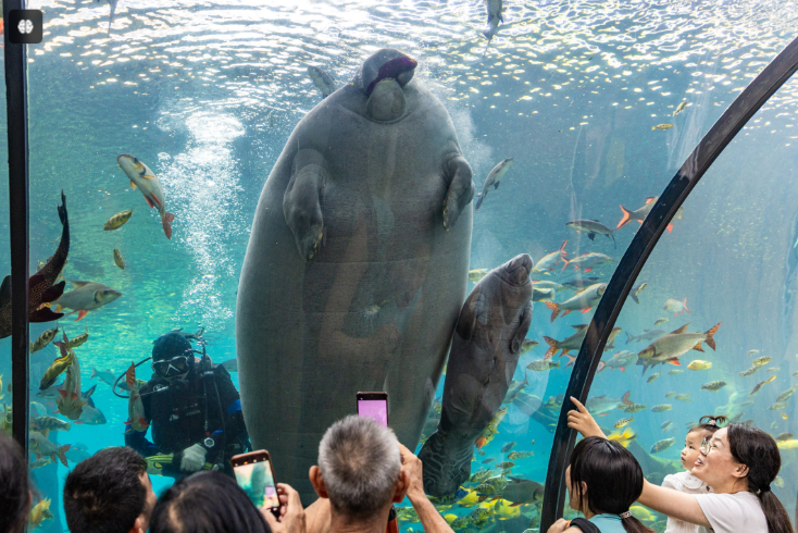 今年暑假以来,经港珠澳大桥珠海口岸的港澳游客同比增长超55%。图为游客在珠海长隆观赏海洋动物。(点新闻记者方俊明摄)