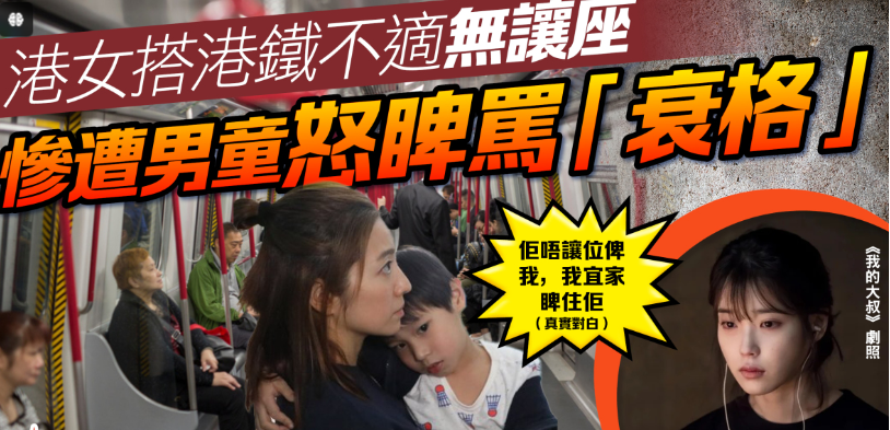 港女搭港铁不适无让座 惨遭男童怒睥骂“衰格”