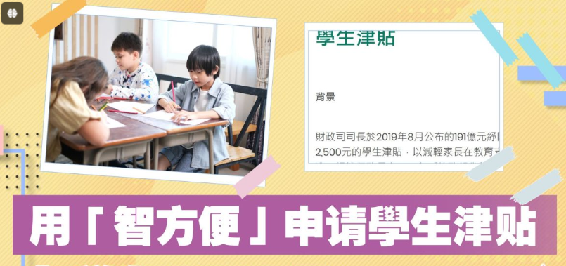 教育局发言人说:“政府为中学日校、小学和幼儿园学生每学年提供2500元的学生津贴,该津贴由2020/21学年起恒常化,以减轻家长在教育开支的负担。” 据悉,这项学生津贴不设资产审查。 所有于申请日在香港的中学日校、小学、特殊学校和幼儿园就读的学生皆可获得有关津贴,但夜校学生、自修生、持学生签证来港就学和持有入境事务处发出担保书(俗称行街纸)的学生则不属资助范围。