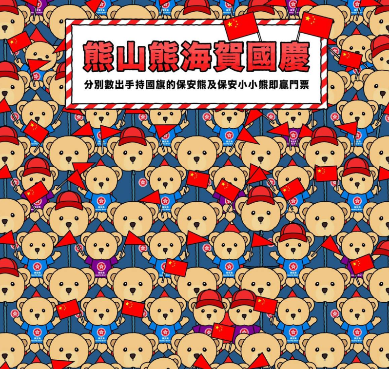 找出所有手持国旗的保安熊仔及保安小小熊,即有机会获得4张门票
