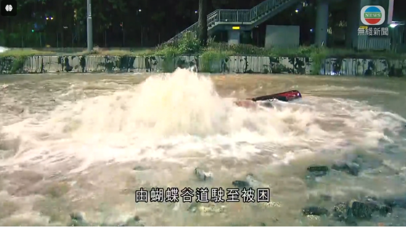 凌晨1时50分左右,涉事的士已几乎全面浸没。(电视截图)