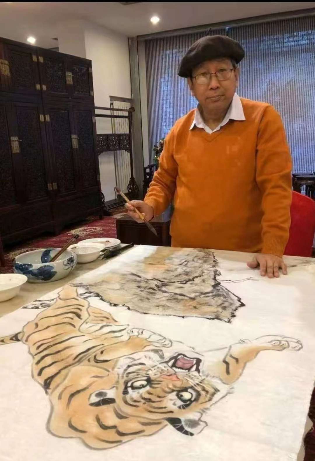 为了深入了解老虎的骨骼特征和生活习性,他三进虎山,向养虎技师求教。他刻苦执着的精神,感动了动物园狮虎山养虎技师,最终他和养虎技师成了忘年交。在养虎技师的积极协助下,他摸过老虎屁股,揪过老虎尾巴,加深了对老虎的感性认识。为他画好虎提供了很大地帮助。为此著名盲人作家张骥良专门采访了他,写了一篇专访《敢摸过老虎屁股的残疾人画家》。