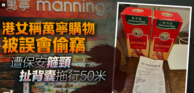 港女称万宁购物被误会偷窃 遭保安箍颈扯背囊拖行50米