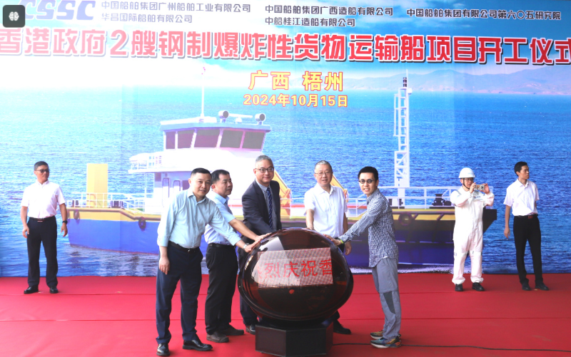 香港海事处2艘钢制爆炸性货物运输船今天(15日)顺利开工。该船由中国船舶集团旗下广州船舶工业有限公司全资子公司华昌国际船舶有限公司总承包,将在多方面实现飞跃性迭代升级。这两艘新船预计明年上半年建成启用,将为香港的水域运输注入新的活力与安全保障,并进一步提升香港特区政府的工程建设能力。