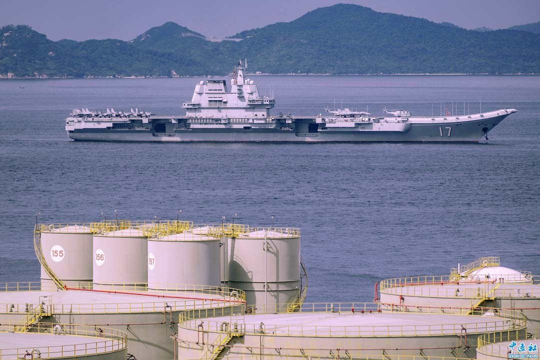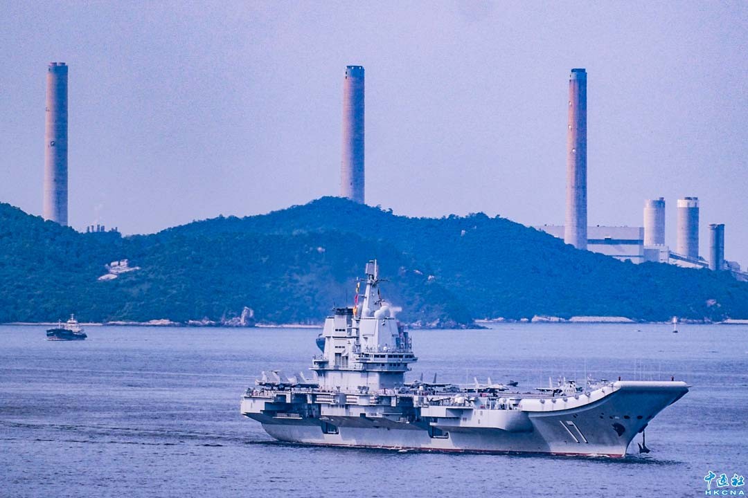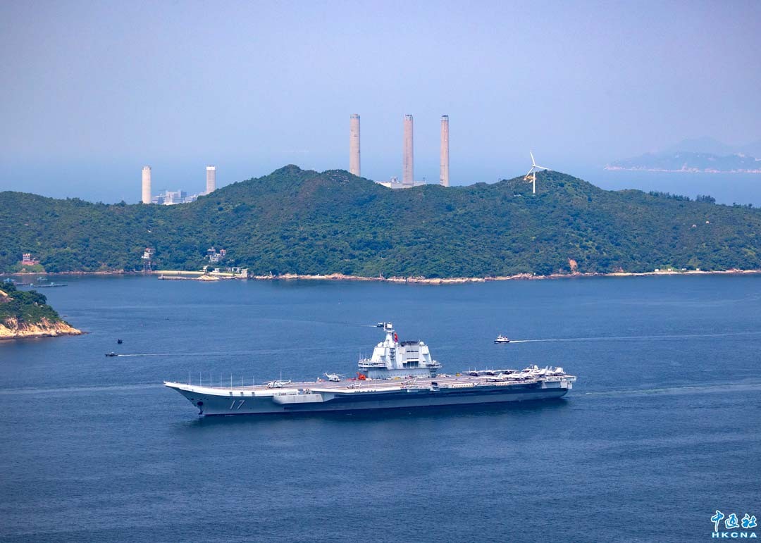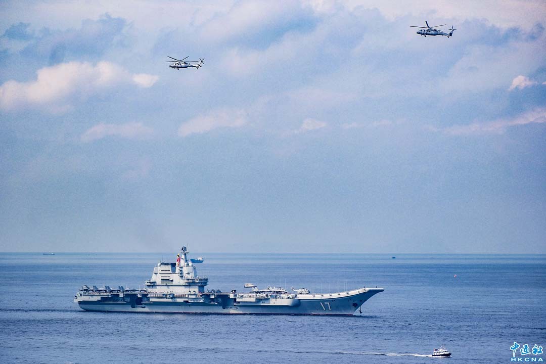 7月7日,山東艦航母編隊離開香港,結束為期5天的訪港行程。(許其皓 攝)