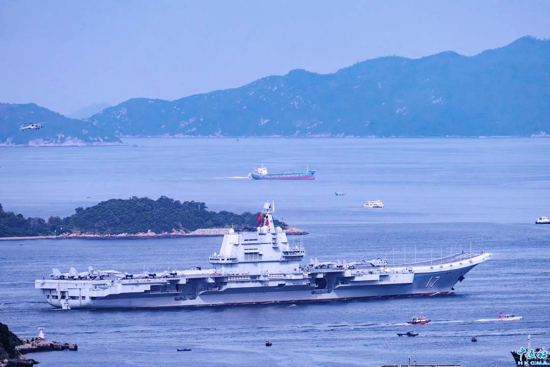 7月7日,山東艦航母編隊離開香港,途經南丫島對開水域。 (徐文峰 攝)