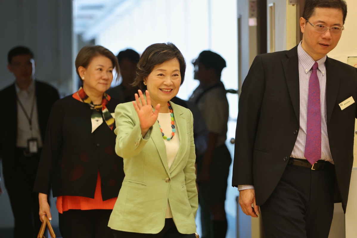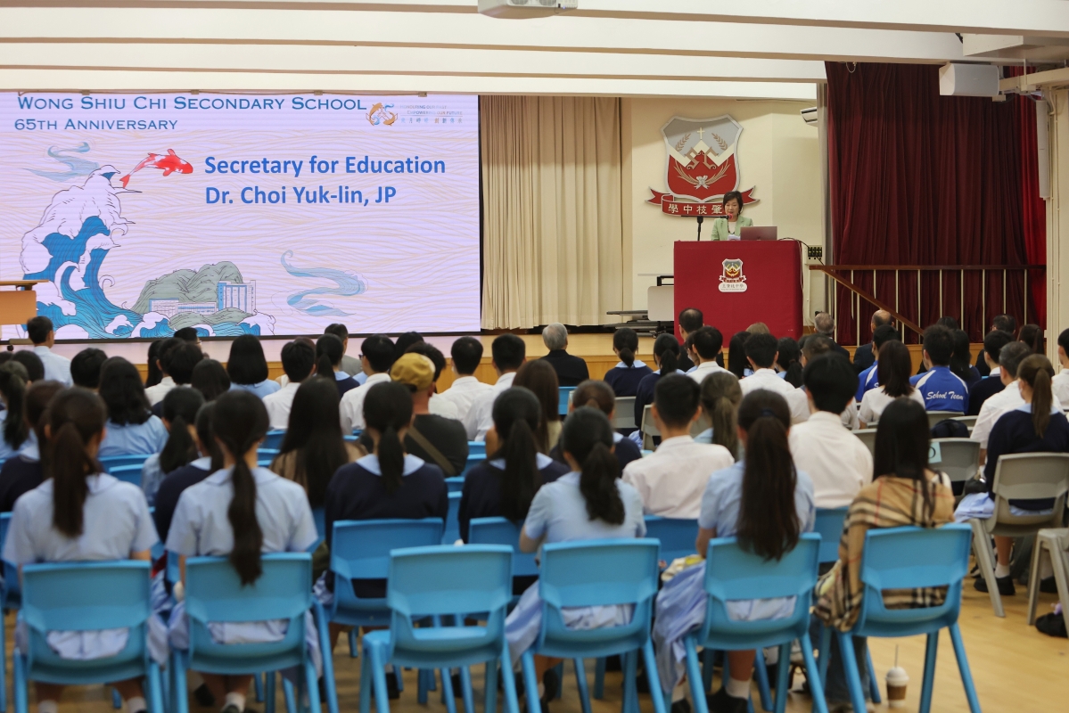 香港特區政府教育局局長蔡若蓮到訪王肇枝中學,勉勵應屆香港中學文憑考試考生。