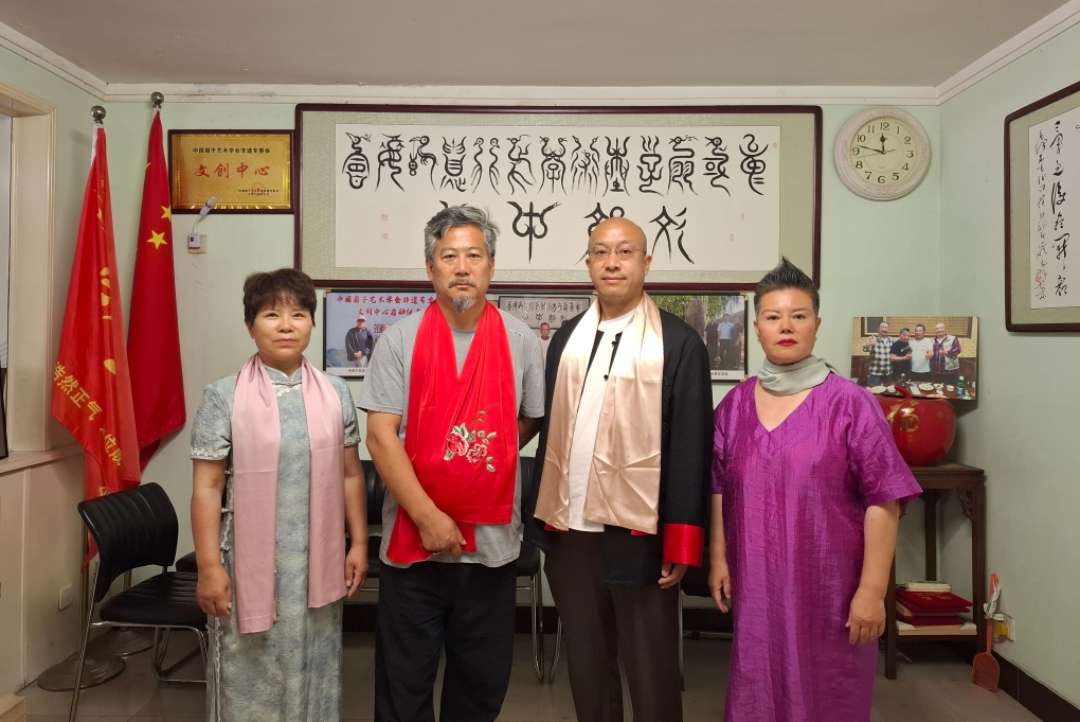 近日,中国扇子艺术学会非遗专委会文创中心一行走进程华服饰,展开了一场以“文化传承与创新”为主题的跨界交流活动。制片人黄帝导演、赵东海先生与文创中心北京站王桂香站长共同到访,与程华服饰团队围绕非遗文化活化、传统技艺与现代服饰融合等核心议题深入对话,为传统文化的当代传承探索新方向。